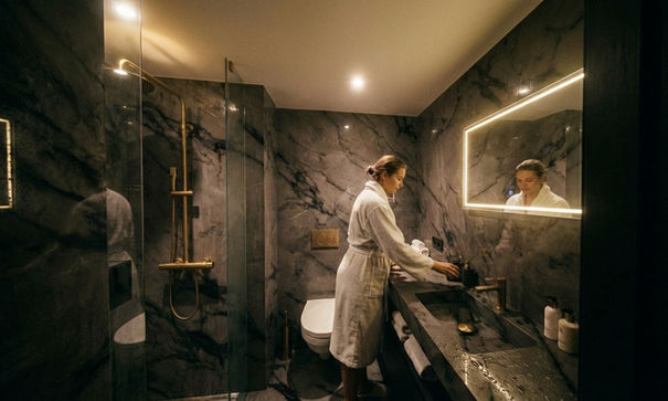 Nido voelt niet compact, maar compleet. Hoogwaardige materialen, een doordachte indeling en een afwerking die je eerder associeert met een boutique-suite dan met een recreatiewoning.